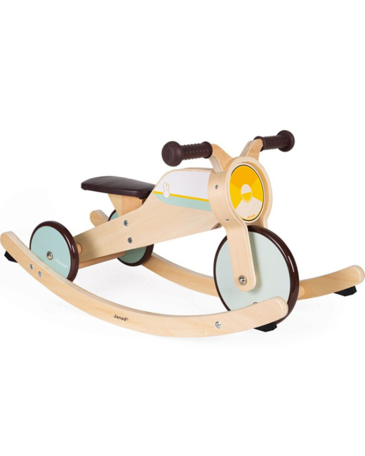 Porteur mini scoot JANOD dès 12 mois : Un porteur en bois idéal pour développer la motricité et l'équilibre de bébé. Il plaira aux petits motards avec son apparence de 'scooter'...